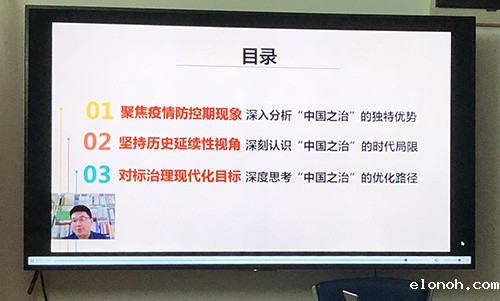 此次在线培训邀请到了广东省委党校/广东党建研究所副教授吴记峰讲授题为《新冠病毒肺炎疫情防控中看中国之治的独特优势》。课程主要按照:聚焦疫情防控期现象深入分析“中国之治”的独特优势;坚持历史延续性视角深刻认识”中国之治”的时代局限;对标治理现代化目标 深度思考“中国之治”的优化路径三点展开 吴教授还从新冠病毒疫情的发生到防控的各种现象结合中国特色社会主义制度、中国特色社会主义理论等方面讲述了中国之治的独特优势,结合新冠病毒疫情的案例让学员思考并学习新冠病毒中的“领导者”、“冲锋者”、“逆行者”、“无畏者”、“无私者”、“担当者”、“守护者”、“志愿者”等人身上的正能量,作为一名党员在大是大非面前应该如何发挥一个党员的先锋带头作用。