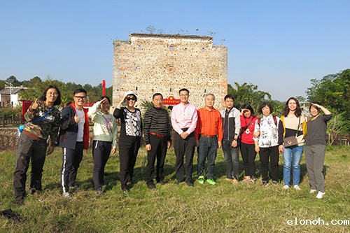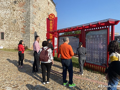 随后,大家走进位于沈所镇八一村(原名外营村)的外营围楼。1919年,由该村村民集资兴建外营围楼,高五层,四面墙用河卵石垒砌、石灰糯米浆黏合而成。1945年8月,抗日战争胜利前夕,震惊广东的“外营惨案”就发生在这里,围楼残存四壁,弹痕累累依然可见。