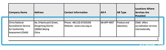 上图为EPA官网上认可机构列表,CNAS已被增加。