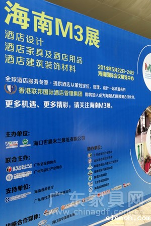 备受海南酒店业界的关注的2014年海南M3展(酒店家具、酒店用品及酒店建筑及装饰材料展览会),将于5月22日在海南国际会展中心盛大开幕。展会将齐聚酒店业界名人、设计师、星级酒店高层以及众多高品质名优展商。包括酒店设计、酒店家具、酒店用品、客房用品/布草与制服、桌面用品、酒店建筑装饰涂料与建材、酒店智能化系统、餐厨设备数百家参展企业,展出面积超过13000平方米。