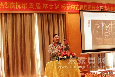 王克会长在讲话中对“红古轩杯”提出了新的希望与要求。王克会长指出,“新中式”正在以不可估量的力量,潜移默化地提升现代人的生活。第五届“红古轩杯”比赛规模空前,收到1390份参赛作品,是省家具协会主办的几个大赛中参赛人数最多的大赛,为我们开启了一场无以伦比的设计盛宴。同时,“红古轩杯”将主题进行类别细分,从沙发椅到博古架,到条案,通过聚焦在某一个类别,让参赛者们进行突破,非常有意义,也期待大赛从这一届开始,让作品转化成为商品,投放到市场,进入到千家万户,从而推动新中式的发展,希望我们的新中式有机会到米兰、欧洲展出,增加新中式家具在中国家具出口的比重。