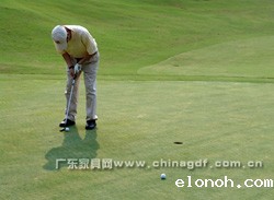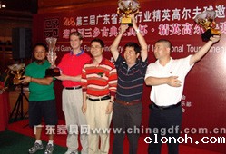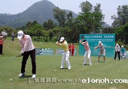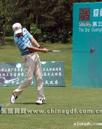 随着中国第一代职业高尔夫国家代表队肖成汉、林燕媚、林少茹、黄丽瑜和全国青少年高 尔夫球业余冠军周晓旋等5位特邀开球礼嘉宾的挥杆,中山温泉高尔夫球会杰克·尼克劳斯球场 的18个TEE台同时开球,拉开了第三届广东省家具行业精英高尔夫球赛的帷幕。
