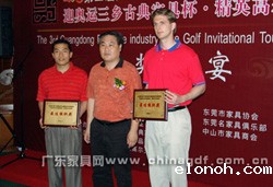 比赛过程中,球员们不但切磋了球技,还增进了友谊,促进了合作。球赛在当天下午5时结 束,颁奖典礼随即在中山温泉高尔夫球会会所举行。深圳市家具行业协会、东莞名家具俱乐部、 广东省家具协会分别获得团体总杆冠、亚、季军,三乡古典家具协会的肖颂乐则打出了球赛举办以来的最好成绩,以77杆的好成绩夺得个人总杆第一名。活动还向中山市三乡古典家具行业 协会颁发了热心公益奖,向深圳市家具行业协会、中山市家具商会颁发了最佳组织奖。同时, 组委会在晚宴上宣布下届球赛拟于今年11月在东莞举行,并进行了交接旗仪式。