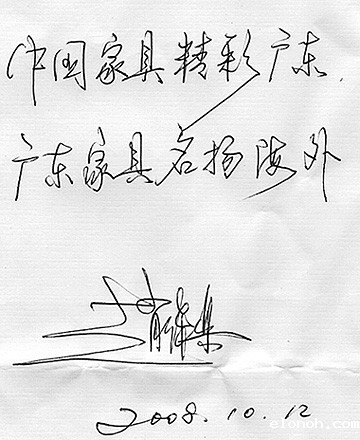 “中国家具精彩广东, 广东家具名扬海外!” ——CCTV中央电视台著名主持人、超人赛主持人赵保乐
