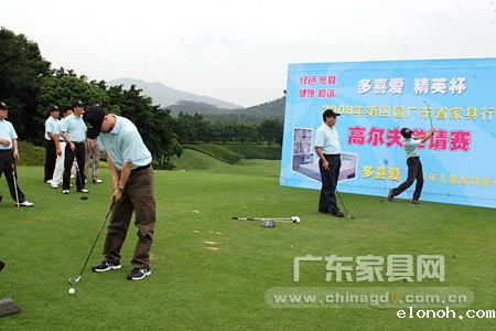 11月4日中午,东莞峰景高尔夫球会彩球飞扬,随着各主办、承办单位负责人的挥杆,第四届广东省家具行业多喜爱·精英杯高尔夫球赛正式开始。而一杆进洞奖宝马Mini汽车的首次出现,成为本届比赛选手争夺的一大亮点。