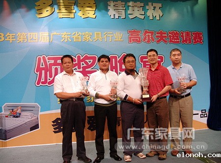 省家具协会常务副会长兼秘书长王克在开球仪式上表示:为了营造家具行业组织之间、会员企业之间“团结协作、共同进步”的良好氛围,展示广东省家具行业精英在高尔夫球运动的竞技水平,推动广东省家具企业提高重视体育运动、增强体质的意识,积极倡导“绿色·家具·健康·和谐”精神,由各家具行业协会/商会主办“广东省家具行业精英高尔夫球邀请赛”,是今年行业的又一体育盛事,第一届团体总杆冠军队是广东省家具协会(253杆/3人),第二届团体总杆冠军队是东莞名家具俱乐部(256杆/3人)第三届团体总杆冠军队是深圳市家具行业协会(252杆/3人)。可以说,通过举行邀请行业精英中的高尔夫球爱好者,参加正规的比赛,基本达到四个主要目的:1、提升家具行业在耐用消费品市场的地位; 2、提升家具行业参与高尚运动项目的积极性;3、提升家具行业在全国高尔夫球运动的水平;4、提升独家冠名企业品牌在行业内外的知名度。