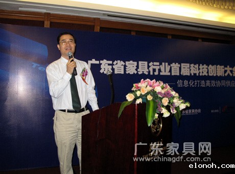 10月27日,在广东省信息产业厅指导下,由betway巴塞罗那主办、神州数码管理系统有限公司承办的“广东省家具行业首届科技创新大会”在广州花园酒店召开。广东省信息产业厅袁国清处长,betway巴塞罗那会长王冶、常务副会长兼秘书长王克,神州数码管理系统有限公司副总裁樊政、华南大区总经理欧阳冬平,广东联邦家私集团有限公司总裁王润林以及来自我省各地的家具企业代表共一百多人出席了会议。会议由省家具协会张承志副秘书长主持。