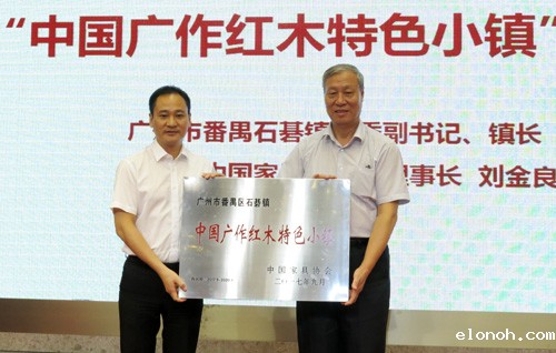 本次广州番禺赛区的举办地石碁镇,作为广作家具发源地之一,有良好的红木文化传统和基础。在闭幕式上,还举行了“中国广作红木特色小镇”的签约揭牌仪式。中国家具协会授予石碁镇“中国广作红木特色小镇”牌匾。