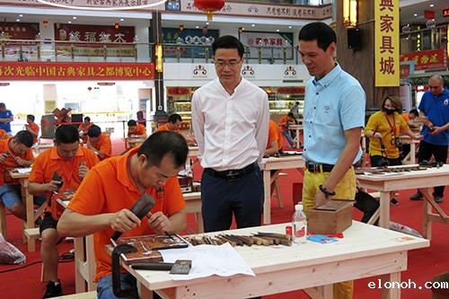 在2019中国技能大赛第二届全国家具雕刻职业技能竞赛广东新会赛区选拔赛现场,木凿声此起彼伏,参赛选手正在紧张而有序地雕刻着,上演一场平面浅浮雕打细胚技艺的“高手对决”。
