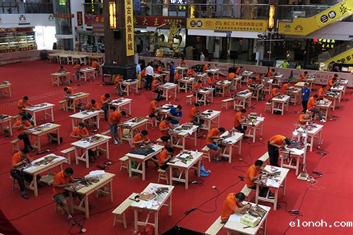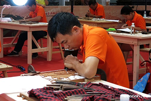本次竞赛工种为木雕工,以《木雕工》国家职业技能标准中的高级技能(国家职业资格三级)为基准进行命题,包括理论考试和技能竞赛两部分。理论考试内容包括:常用木材知识、常用雕刻工具的基本知识、木雕专业知识与相关的艺术常识、雕刻基本流程知识、安全文明生产与环境保护知识、质量管理知识和相关法律法规知识。技能竞赛内容为红木材料现场平面浅浮雕打细胚。参赛选手根据图稿,在规定时间内,现场手工完成打细胚。
