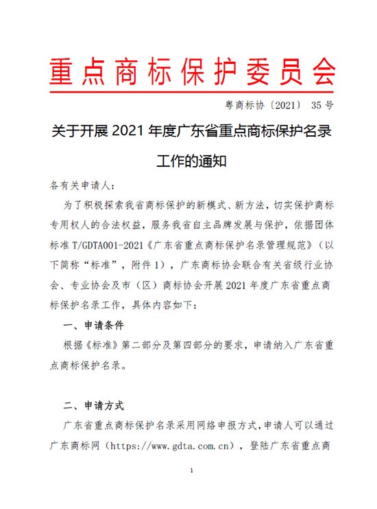 附件:重点商标保护委员会关于开展2021年度广东省重点商标保护名录工作的通知