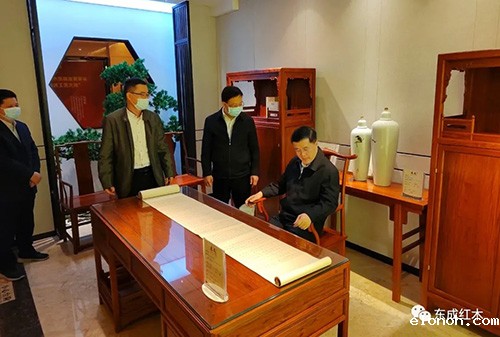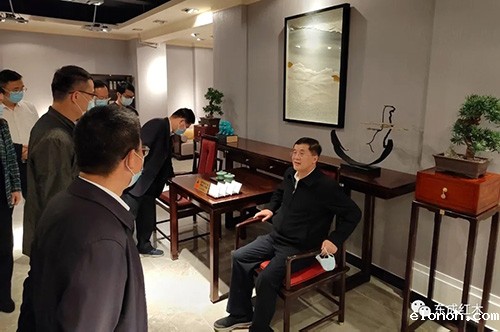 通过与红木家具的近距离接触, 调研组一行深刻感受到东成红木家具精品的独特魅力以及东成红木执着追求的精益求精的工匠精神。领导们对东成红木家具精湛的工艺和紧跟当代审美及实用性需求的设计理念给予了高度肯定。同时鼓励东成红木要坚定发展信心,不断创新思路,在开展产品绿色制造、用文化引领产业发展等方面积极作为,继续发挥好红木家具龙头企业的引领和示范作用,为广东省经济繁荣发展持续贡献东成力量。