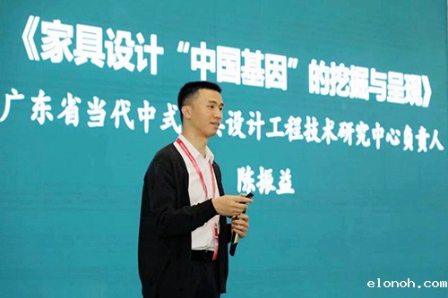 广东省当代中式家具设计工程技术研究中心负责人陈振益在题为《家具设计“中国基因”的挖掘与呈现》的演讲中解析了家具设计的“中国基因”。他认为,基因可以分成“人类学”及“社会学”两大领域,我们应该在设计当中找到符合内心秩序的基因与归属。他还从跨学界概念,带来了不同领域的设计作品和主义理念(集体主义、个人主义、价值主义),展示了家具设计里的“中国基因”是如何被挖掘、构建,并最终体现在作品当中。