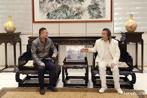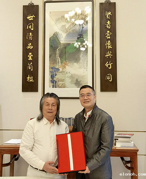 在伍大师陪同下,王会长参观了馆藏的黄花梨、小叶紫檀家具珍品、精品,伍大师如数家珍,详细、生动地介绍了其创业和创作历程,娓娓道出作品背后的故事。一起观看在中国国家博物馆举办的“澄古匠心——伍炳亮家具艺术展”开幕式及研讨会精彩视频。最后,伍大师向王会长赠送了刚刚出版的《伍炳亮作品撷珍:海南黄花梨之美》新书。