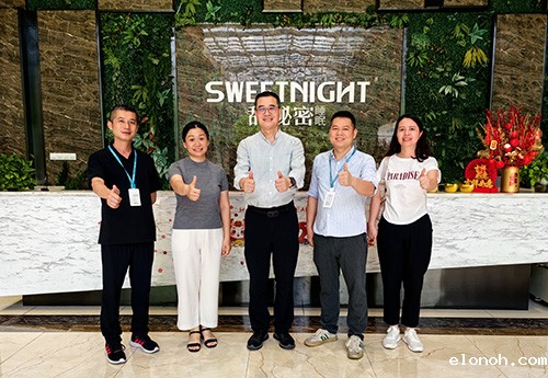 随后,王会长一行来到广东甜秘密创新科技有限公司,走进床垫自动化生产线和展厅,亲身体验睡眠科技创新产品,深入了解企业在电商销售领域的成功经验与面临的挑战。王会长对企业在电商销售领域的创新实践表示高度认可,并鼓励企业要继续发挥自身优势,加大研发投入,推出更多符合消费需求的高品质床垫产品,并积极探索新的销售模式和营销策略,以更好地适应市场变化,实现可持续发展。
