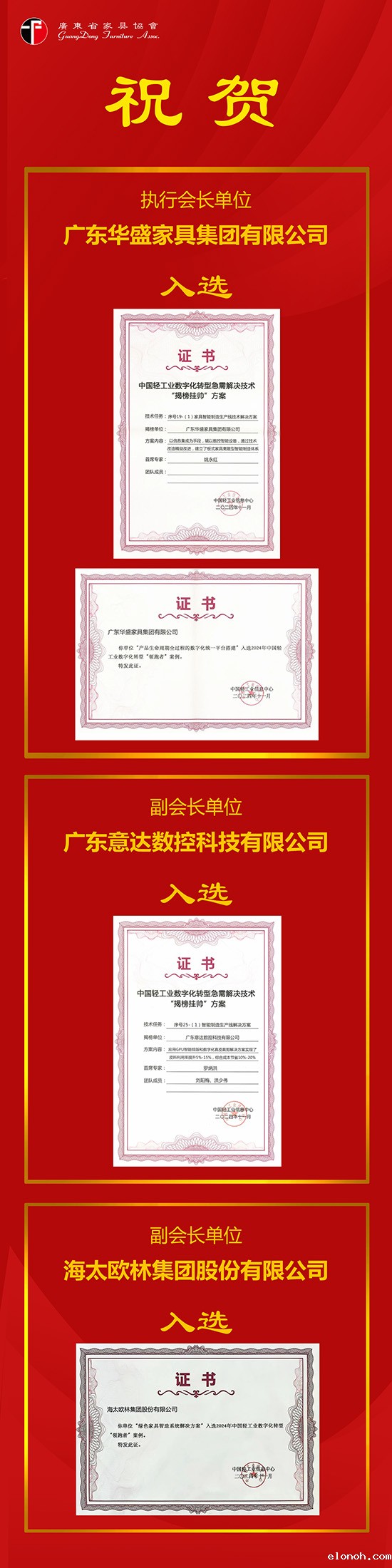 11月1日,以“数智领航 新质发展”为主题的第十四届中国轻工业信息化大会在重庆召开。会上发布了100项中国轻工业数字化转型急需解决技术“揭榜挂帅”方案和287项中国轻工业数字化转型“领跑者”案例成果,betway巴塞罗那执行会长单位广东华盛家具集团有限公司,副会长单位广东意达数控科技有限公司、海太欧林集团股份有限公司成功入选,为行业提升数字化水平提供了参考和经验。