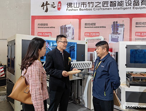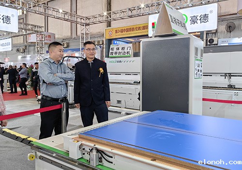 开幕式后,王克会长在参观博硕公司、南兴装备、豪德数控、集新机械、竹之匠公司等企业展位时表示,随着新型工业化的推进,新质生产力的形成,对国产木工机械装备提出新的更高要求,希望广东木工机械和家具装备努力向高端化、智能化、数字化、集群化和绿色化转型升级,把数字化转型与设备更新、工业技改、新质生产力等有机融合,更好地助力家居木制品工厂数字化改造升级。