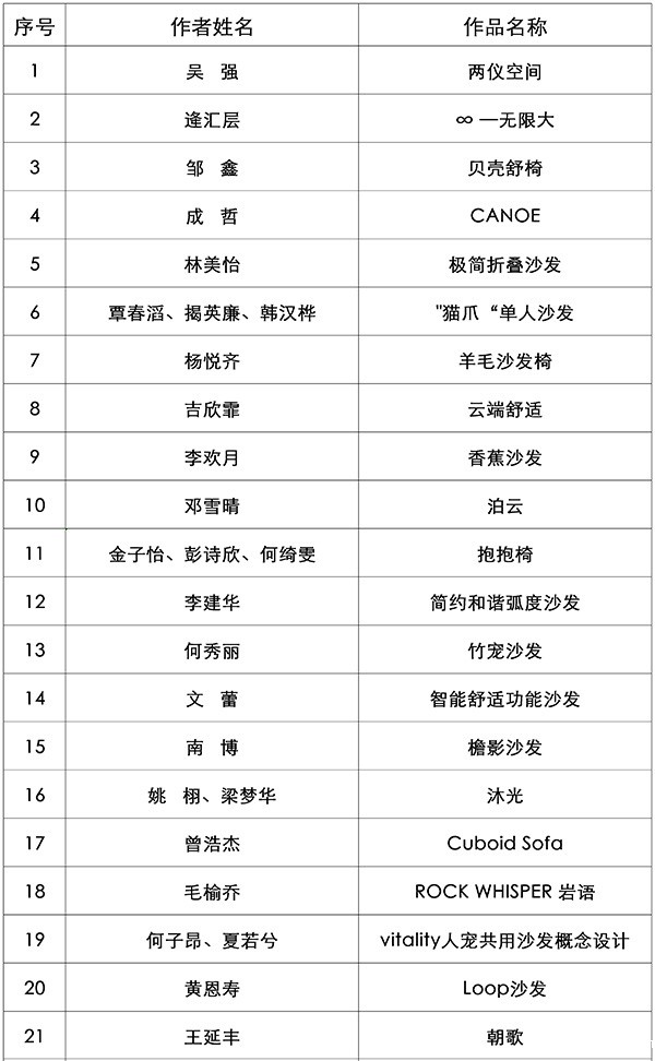 2024“慕思杯”全国软体家具设计大赛入围决赛名单(沙发类)