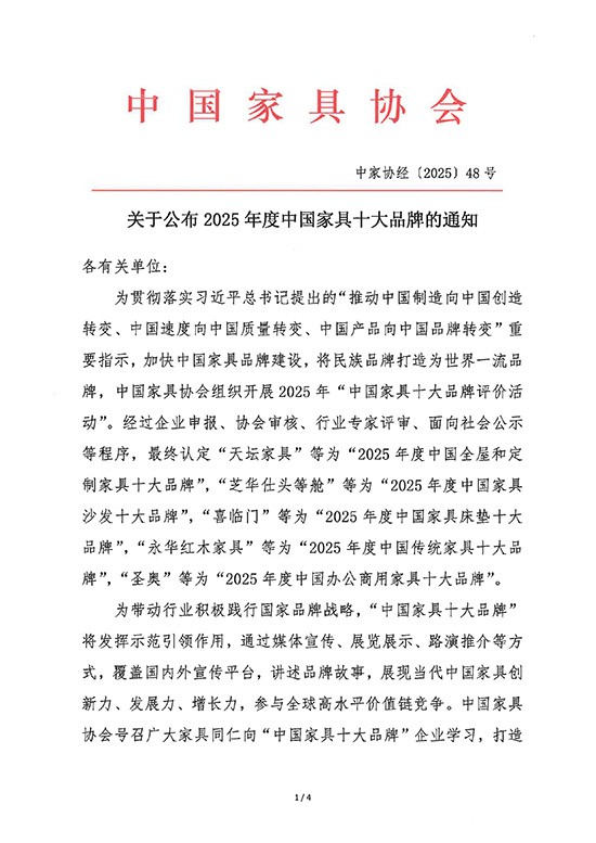 热烈祝贺广东家协14家会员单位荣获“中国家具十大品牌”称号 2025-6-20 来源:betway巴塞罗那、中国家具协会