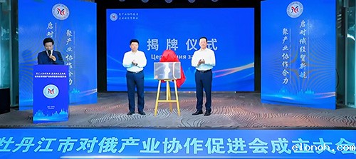 会上,牡丹江市对俄产业协作促进会正式揭牌成立,为会长许立香,副会长李永江、关雷、孙先波、杨宝福,以及理事颁发证书。