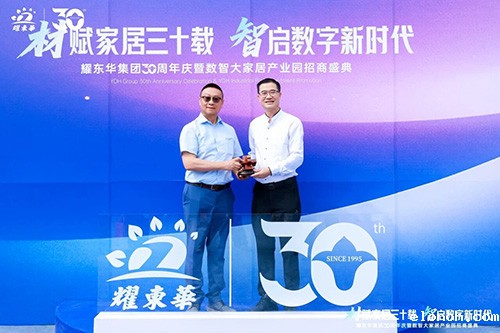 站在新的历史起点上,我们期待耀东华的第二个三十年,以“同步世界,耀领中华——成为世界领先家装板材集成服务运营商”为愿景,围绕我省家具行业“创新驱动、设计引领、优质优价、绿色发展”的指导思想,以环保、时尚、创新、优质为己任,发扬企业家精神、创新精神和工匠精神,通过设计、品质、服务、品牌的全面升级,进一步完善数字化服务系统,实现从饰面板企业转化成打通上下游企业形成定制家具产业链、生态链的智慧赋能平台的华丽变革,为促进我国家具行业智能化、绿色化、高端化发展赋能,为促进人们美好新生活做出积极贡献。 对此,betway巴塞罗那作为全省先进社会组织、5A级社会组织,将一如既往与耀东华携手前行,以更加开放的姿态拥抱时代变迁,以更加持续的创新驱动产业发展,支持耀东华阔步迈向新征程,为实现中国家具大国向强国的迈进共同努力! 最后,祝耀东华三十周年庆典暨数智大家居产业园招商圆满成功,祝愿耀东华拥有一个更加辉煌的明天!