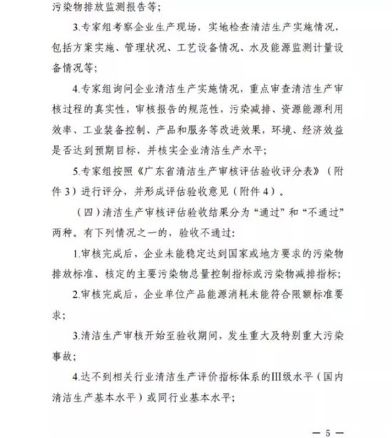 粤经信规字〔2017〕3号 广东省经济和信息化委 广东省环境保护厅关于印发清洁生产审核及验收工作流程的通知 各地级以上市经济和信息化主管部门、环境保护主管部门,顺德区经济和科技促进局、环境运输和城市管理局: 现将《广东省经济和信息化委 广东省环境保护厅清洁生产审核及验收工作流程》印发给你们,请遵照执行,执行中如遇问题,请迳向省经济和信息化委、省环境保护厅反映。 广东省经济和信息化委员会 相关文件:广东省经济和信息化委 广东省环境保护厅关于印发清洁生产审核及验收工作流程的通知